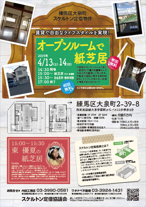 大泉町のオープンルームで楽しい紙芝居。声優の東優夏さんが七色の声を駆使して語ります。不動産や建物に関する無料相談も。ここでしかきけないお得な情報がきけるかも!?